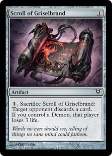 I really like these cards and wish they were playable, especially since they both combine so nicely with Trinket Mage. Unfortunately, there is a critical lack of angels and demons in the format, and without the corresponding creature type, each card is essentially a filter card and a discard card, respectively. However, they are worth keeping in mind for some future set in which more angels and demons are printed at common, or if something wants to be ambitious and build the deck based off of changelings.