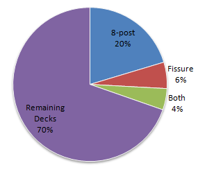 Now, while the oppressive nature of Temporal Fissure is my major complaint, I have to say it seems like the community holds higher concern for how fair the mana generated from Cloudpost is. Perhaps this is a legitimate concern. Without going into too much detail over the discussion of 8-post, which has been really beaten into the ground, it is still safe to say that it enables quite a few different decks. If we take a look at that last chart and simply highlight the 8-post decks in the meta, here’s how things look…