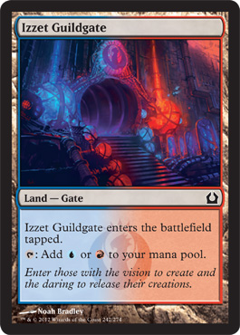 You may have noticed something peculiar in each of the aforementioned decks’ mana bases. That’s because thanks to Return to Ravnica we now have the Guildgates! Pauper players have been clamoring for a land like this for a long time, and now we’ve got them (well, five out of ten of them anyway). The color combinations we currently have at our disposal are Azorius, Selesnya, Izzet, Rakdos, and Golgari. The most critical of these has to be Izzet, followed by Selesnya. Post is already just about the top dog at the moment, and arguably gets better with these lands.