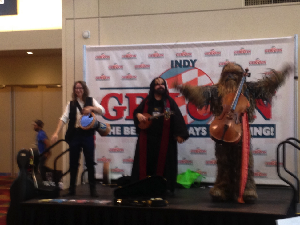 It’s noteworthy how much this town embraces the invasion of nerds that occurs once per year, in that everything downtown seemed geared to accommodate us and our dweeby tastes. The brewery had produced a can labeled the “official beer of GenCon” and given it a bad Star Trek pun for a name. There was live music set to begin at 6pm, and waiting for the band to come on, here’s the playlist they had over the PA system: B-52’s “Girls”, Devo’s “Satisfaction”, Weird Al’s “Amish Paradise”, catering respectively to the Hipster Nerd, Eccentric Nerd, and Excessively Pasty Nerd.