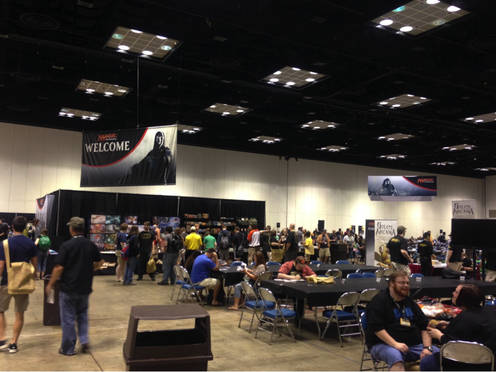 For some reason, perhaps a desire to resemble a 19th century Yukon logging village, you are required to pay the tournament entry fees using a sort of scrip currency known as “generic tickets”. Generic tickets are purchased for $2 each, and are necessary to enter any of the MTG events, unless you pre-registered online and therefore had a “specific event ticket”. Blessedly, there was a table set up near the MTG area which would convert your US dollars into Itchy and Scratchy Funland Bucks, and if you had any unused tickets at the end of the weekend you can and should re-exchange them for cash – unless of course you are from Argentina, in which case it’s safer to just keep all your money invested in GenCon tickets rather than convert them back to useless pesos.