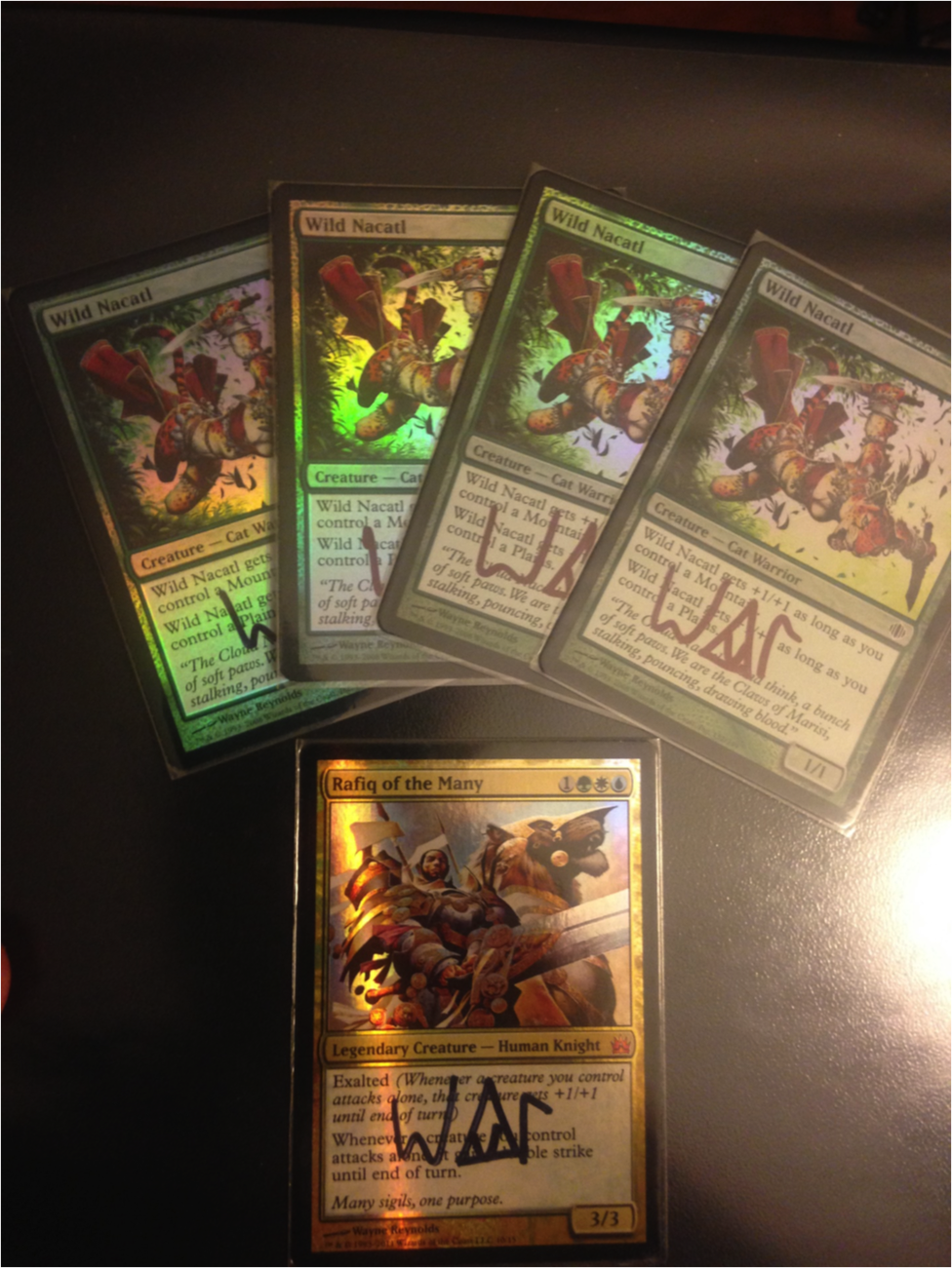 Sunday morning, after a fun pickup D&D game with my brother, I headed back over to the exhibit area and got to meet MTG artist Wayne Reynolds. As a big fan of Legacy Zoo, I was happy to get my Nacatls signed, along with the FTV: Legends version of Rafiq. I asked Wayne if they give artists any different instruction when drawing cards that are only going to exist in foil, but he said that they don’t give any guidance on that and the entire foiling process occurs after the art is already handed off.