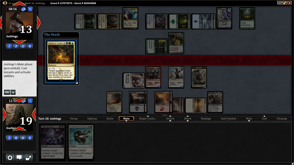 Well she won the game for me when she tapped everything to play Villainous Wealth. Everything included Mana Confluence. While she now had a pretty impressive army I casted the two spells and won Game 1.