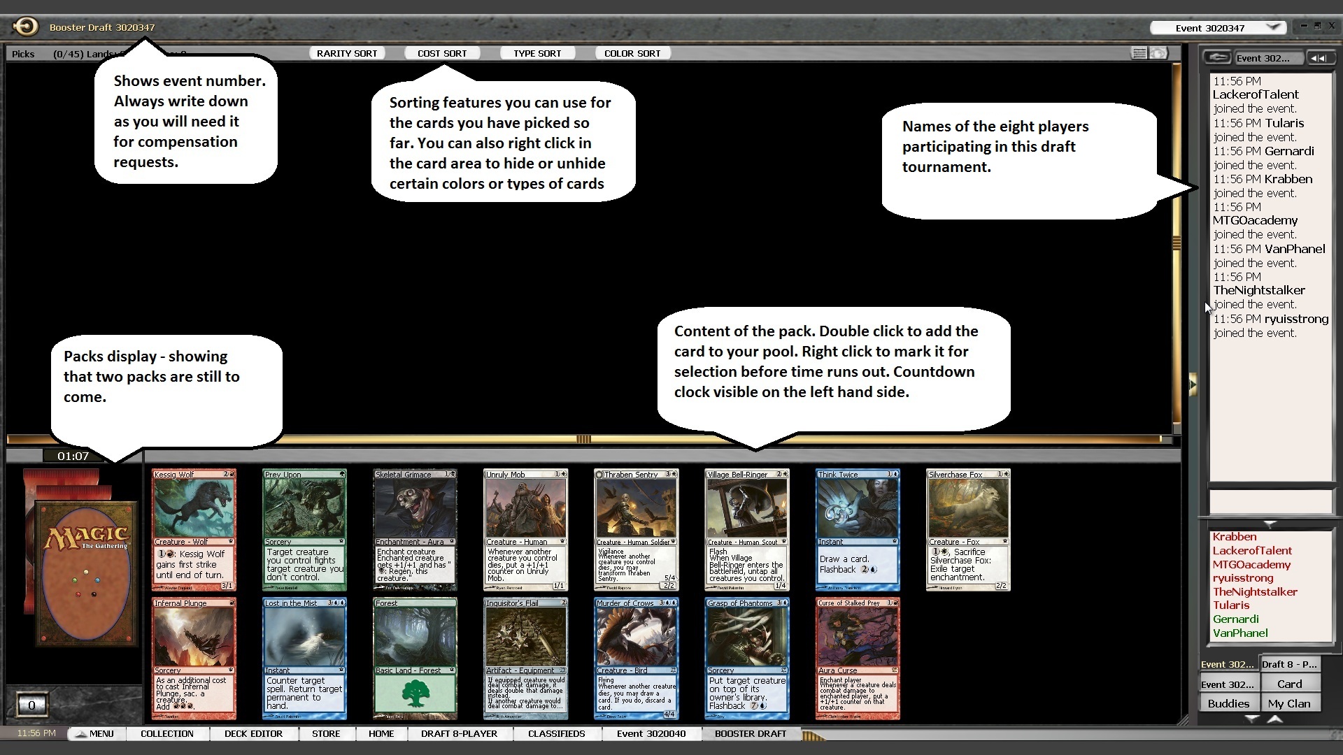 - Always write down the event number, time, and the game number of the game you are just playing. The reason is that in case you encounter a bug in the system or the draft gets canceled outside of your culpability, you will need these numbers to file for compensation. If you do that, you have a great chance to get the packs back you have bought and it is much harder to find those numbers once you are disconnected or the system crashes.