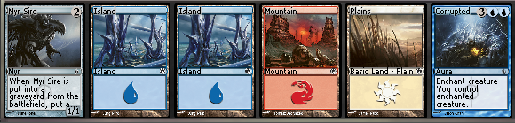 This one’s fine. We’d like to draw more spells than land, but Myr Sire will hold the ground long enough for his friends to show up. I mean, if he had friends.