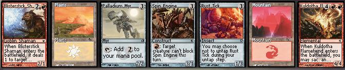 There isn’t very much to say here. The draft was all over the place, and the deck reflects that. I’m more worried about our lack of an early curve than mana issues, but unless we face an aggressive start while failing to hit an Arc Trail, we should be fine.