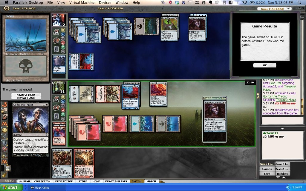 MTGO decided not to keep the replay of this game, but you didn’t miss much. Arc Trail > Infect, and that’s end-of-story.