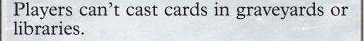 Dredge decks have been abusing the graveyard for years. Bazaar of Baghdad and the dredge mechanic use the graveyard as a resource, rather than as a zone to place expended cards. It seems that with each set comes a new card that abuses cards in the graveyard. Thus, with the addition of these cards, Dredge decks can perform increasingly broken things like reanimating a large creature or putting cards into play for “free” directly from the graveyard. Perhaps the biggest complaint against a Dredge deck is that playing against it is similar to two people playing games of solitaire against each other, trying to see who can reach their goal in the fewest number of moves. Yawgmoth’s Will similarly abuses the graveyard to its advantage, recasting spells that have already been cast (or countered).
