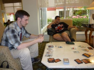 After the WotC’s joined us we quickly wrapped up our games (Cube drafting is a lot of fun and I encourage you to try it if you ever get the opportunity) and met outside the hotel lobby to to devise our “war strategy” for the evening.