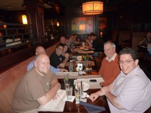 The time went by quickly and a few WotC guys joined us to pick us up for dinner. This would be the first opportunity to meet a whole bunch of community members and Wizards folks while enjoying some hearty meal. I was excited and curious to meet some of the people I have interacted with in the past but never actually met in “real life.” This would be the first opportunity to ask some questions directly and hopefully get some insightful answers from the MTGO team. Oh, I forgot – a few pictures that show the community team battling with their Cube decks. Check out Nate’s article about Cube drafting here at the Academy.