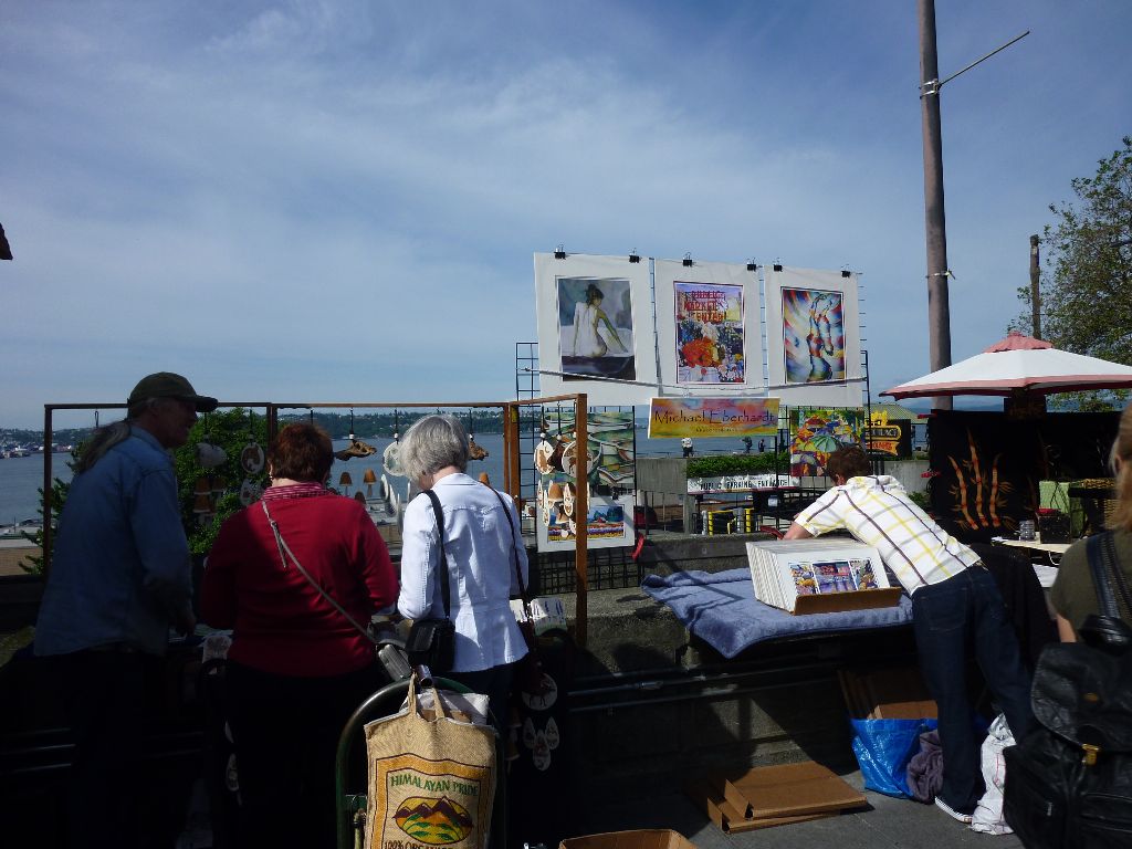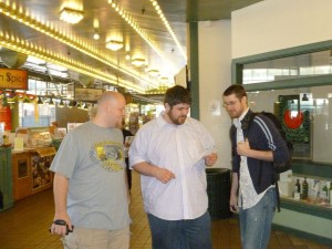 This is a view from Pike Place to the bay We had ample time to explore the various levels of the market and indulge in some exotic specialties such as chocolate covered cherries or spicy pepper breakfast jelly… Additional excitement generated Vince’s announcement that we will receive a bunch of questions and the first team that solves them gets some nice Magic swag. The questions where pretty tough and soon after teams spread out to find hints and answers….