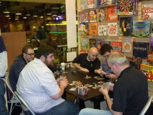Uncle’s Games provided us will a lot of space to try out the new multi-player product from Wizards of the Coast – Archenemy. In Archenemy one player, the Archenemy, is battling multipleopponents at the same time with the help of a set of “Scheme cards”. Those cards are drawn at the beginning of the turn and help the archenemy to fight the “heroes.” The game was about to be released a week later and we had the opportunity to try it first. It is a lot of fun and I can recommend it if you love multi-player Magic. Check it out here!A short video that covers our experience: