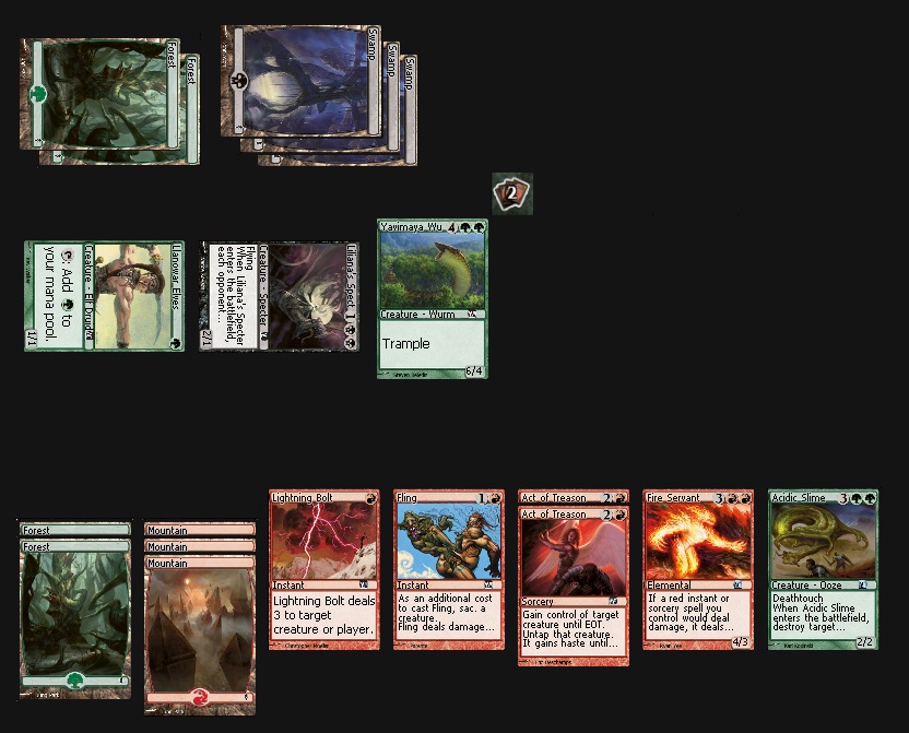 The most obvious play is to cast Fire Servant, take some damage, and then Act of Treason the Yavimaya Wurm, attack and Fling the Wurm at his face, then Bolt him if necessary. The only excuse I have for not making this play was that I knew he had Gaea’s Revenge, and if he left back Specter and I didn’t draw a land, I would be in a bad spot. I made a play that could still be considered okay; I Slimed his Forest. The reason this play ended badly for me is because I blocked the Yavimaya Wurm. This play is so obviously wrong that I can’t really defend it. Leaving him with a Wurm in play (at the cost of 2 life) allows me to essentially be in control for the remainder of the game. I could kill him within two turns without much fear. Instead, he plays a Giant Spider this turn, I draw a land and play Fire Servant, and he plays Gaea’s Revenge. I still have the option of Bolting my opponent’s face to leave me with my two other Lightning Bolts as outs. I chose to Bolt the Specter and leave any creature or Garruk as an out. I draw a Lightning Bolt and die shortly afterward. It feels so bad to know that there were many different things you could do to win the game, but you threw it away instead. There are no excuses; I played badly and deserved to lose the game. Now, I just have to move on and not make any more mistakes.