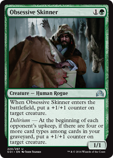 T: Why would they put delirium in the same set as madness? Are they trying to see how many synonyms for insanity it takes before you actually lose your mind trying to remember which is which? Maybe they should throw in frenzy for good measure. This mechanic plays well with Tarmogoyf, and is just as flavorful.