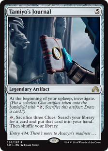 T: Tamiyo, fascinated by the many loligoth subcultures of the multiverse, left her home plane of Kamigawa to study with the astronomancers and scienceomancers of Innistrad. Her journal details her findings about Innistrad’s moon, among other things. Leading theories in the field posit that it is either A.) a demon’s eyeball, B.) a giant heron egg, or C.) a mild dessert cheese. Will Jace be able to unravel the mysteries of this cryptic tome before the plane, and everyone on it, is destroyed? Of course he will! That guy just won’t ever go away.