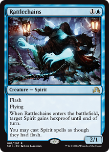 K: Is also a mechanic that is introduced in the set Shadows over Innistrad. It’s like an evasion ability with a slightly spookier than average name, because blue and black definitely were in need of more ways to make creatures hard to block. Let’s move on.
